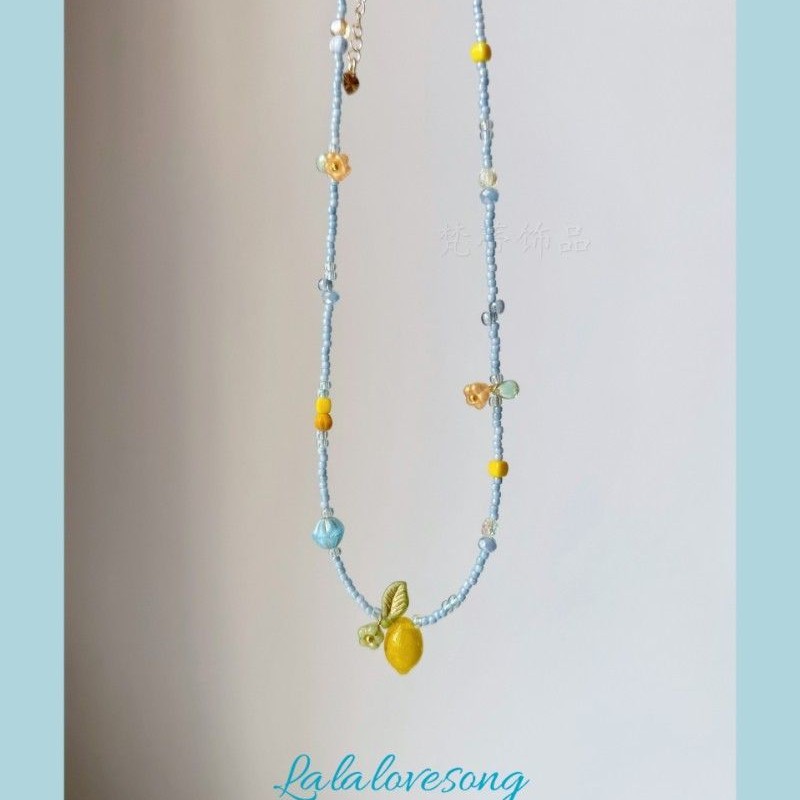 Lalalovesongオリジナルハンドメイド「ポルタノのレモン」高級気質ニッチビーズネックレス