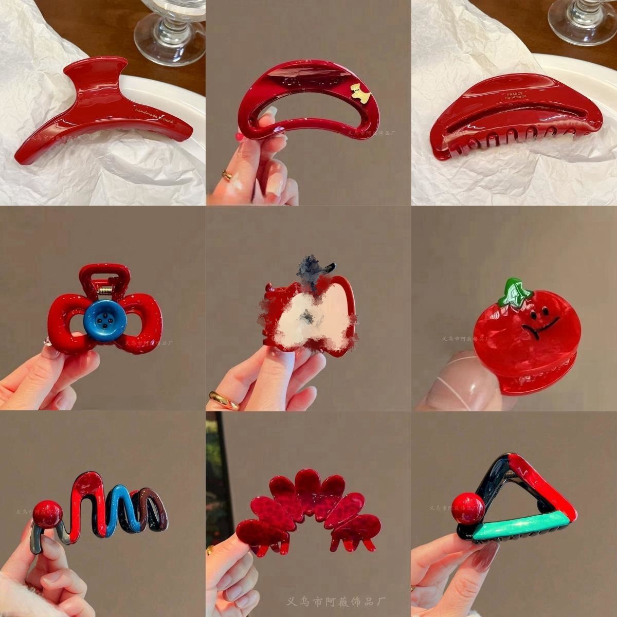 アンコラの赤い蝶結びのボタンは早秋のサメを挟んで髪を挟みます。