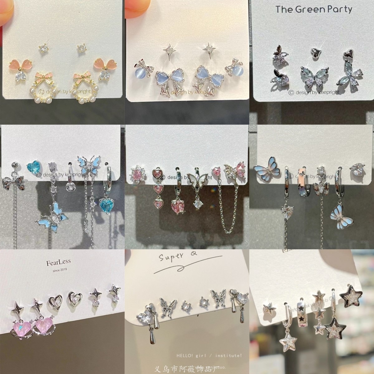 好きですね ~ 甘いクールな蝶のピアス6セットの新しいセットのファッション気質イヤリングの小さな高級耳飾りの女性