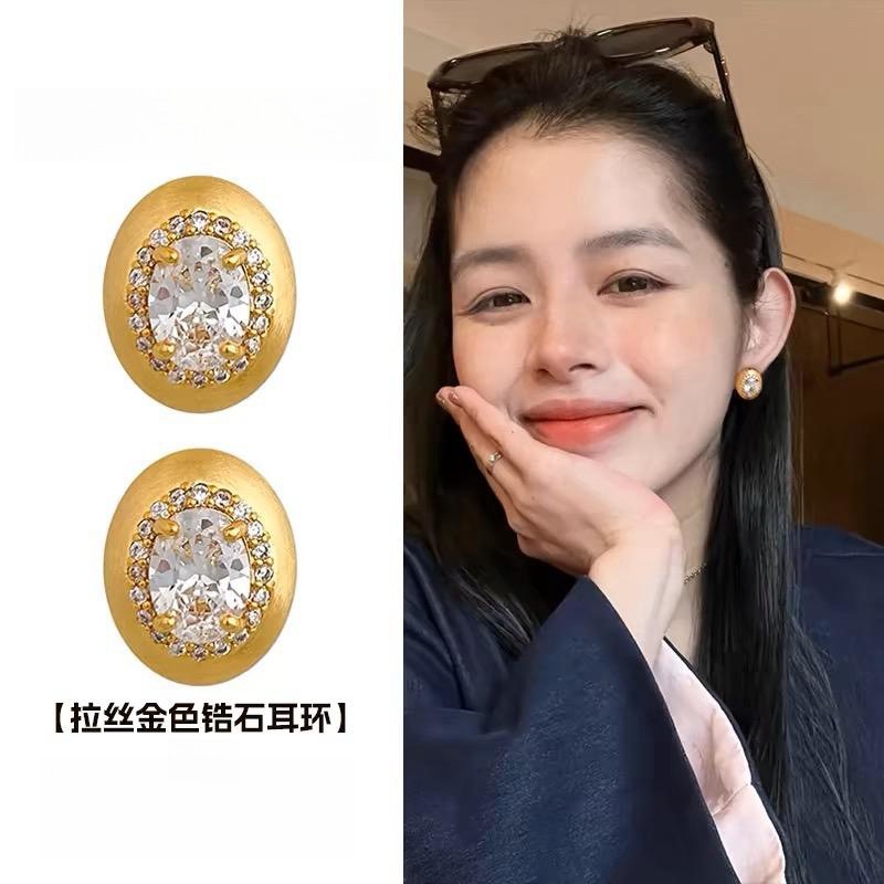 中古の金色の糸を引く金属のジルコンのピアスの女性の大衆の軽い豪華な気質のファッションは簡単で高級な鳩の卵のイヤリングです。