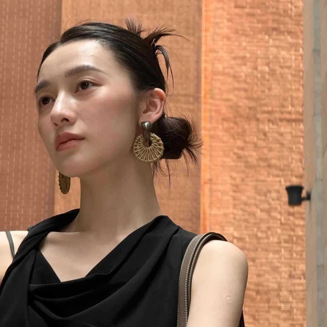 アクリル樹脂模擬竹籐わら織り春夏レトロ旅行写真イヤリングとイヤークリップ