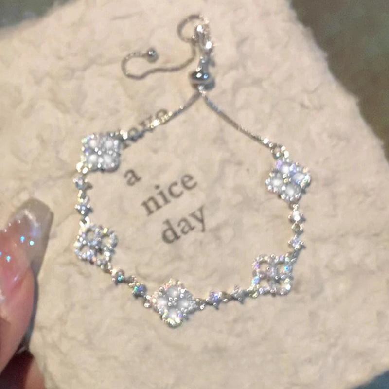 清冷感四葉草ジルコンブレスレット高颜値学生党ins小衆デザイン感軽贅沢高級感手飾り