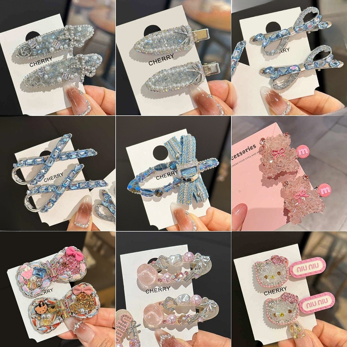 韓国の新型水晶ピンクの熊はドリルのヘアピンをいっぱい持っています。
