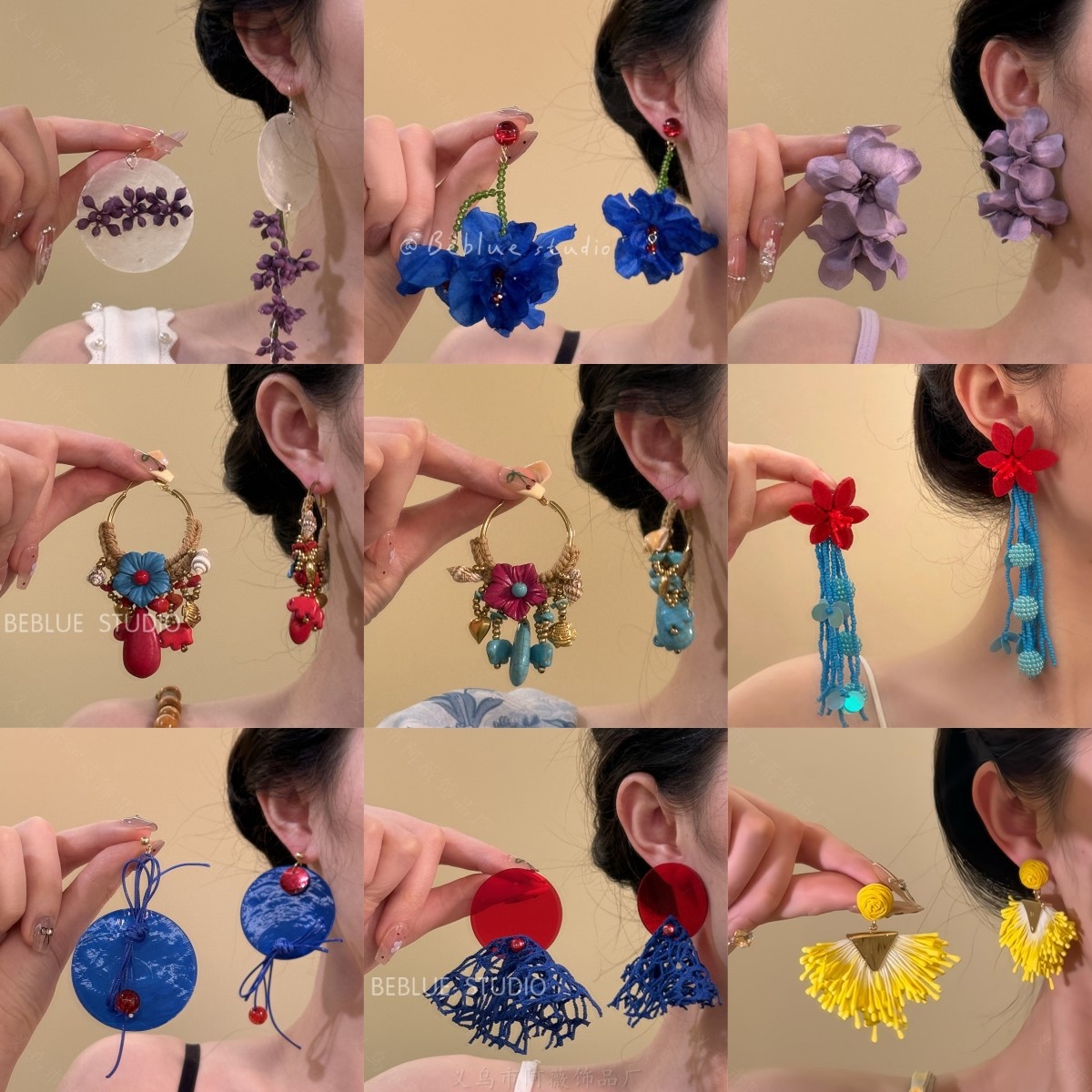 バンコクの花〜カラフルな花のタッセルイヤリング女性のビーチリゾートスタイルイヤリングボヘミアンレトロイヤリング