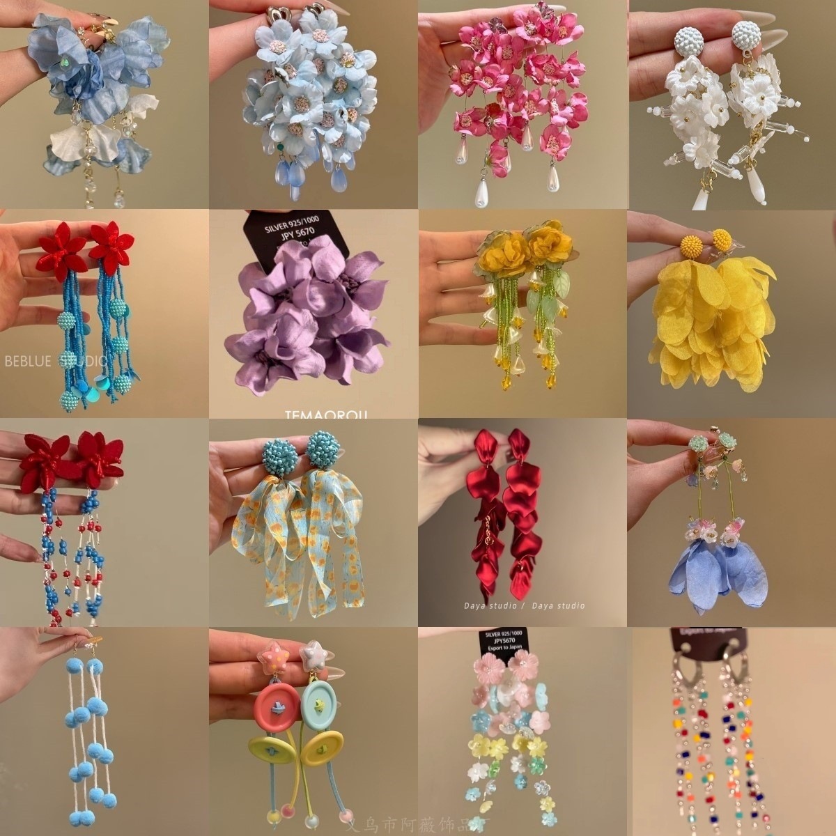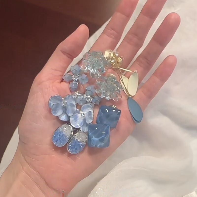癒し系ブルー耳クリップ合集小清新花耳クリップ気質蚊取り盤無痛耳飾り甘いピアス