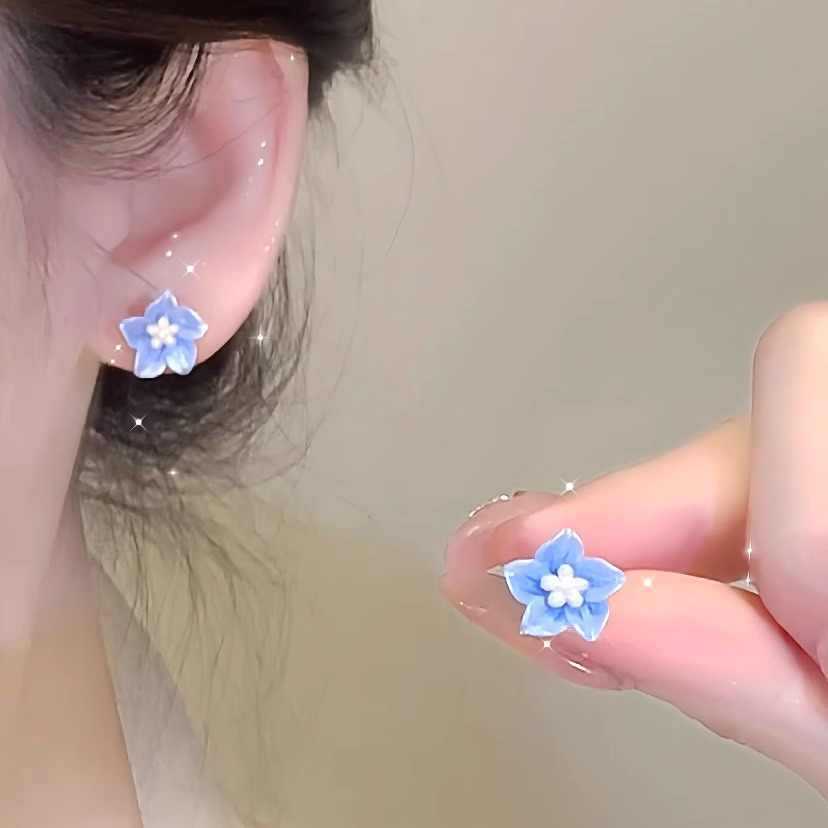 「エンドレスサマー」フレッシュブルーフラワー925シルバーイヤリング女性用スイートデイリーノンピアス蚊取り線香イヤークリップ