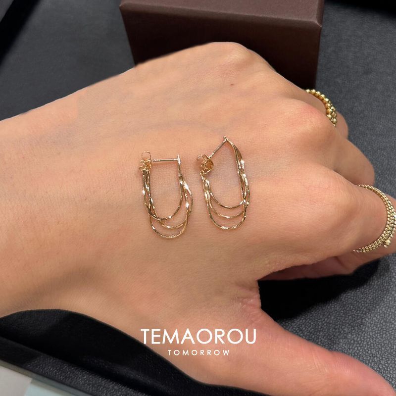 日系金色三連極細流蘇クロスイヤリング気質軽豪華高級感2025独特耳飾りイヤリング