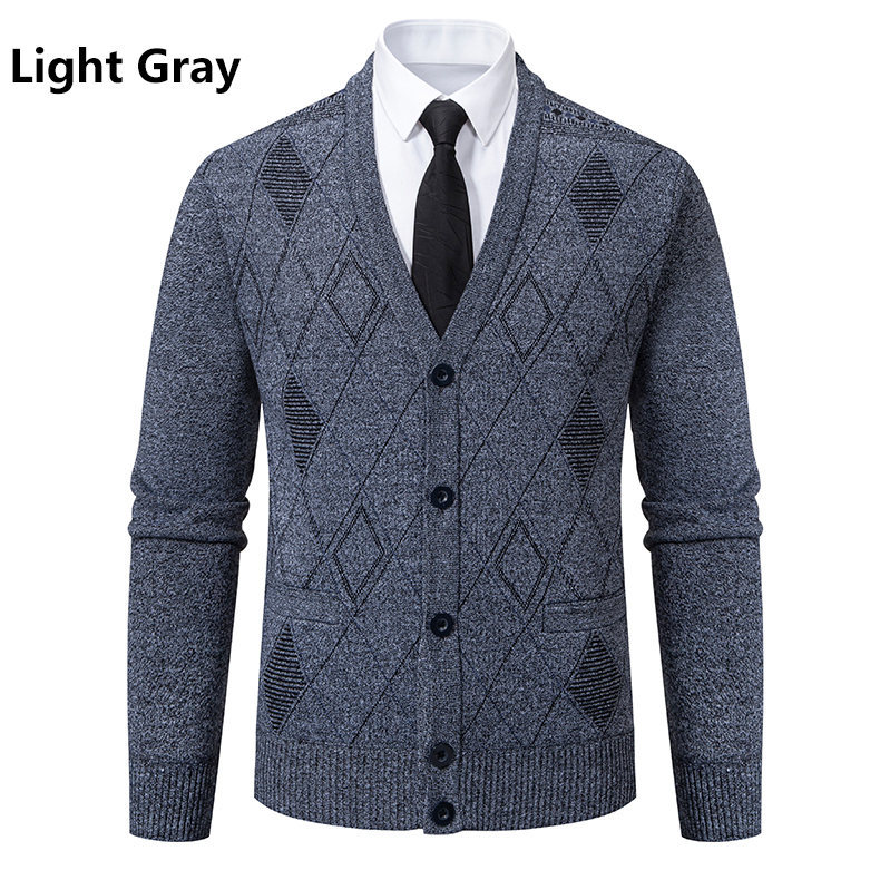 クロスボーダー2024秋冬新作男性カジュアルベルベット厚手セーター男性vネックニットコート男性
