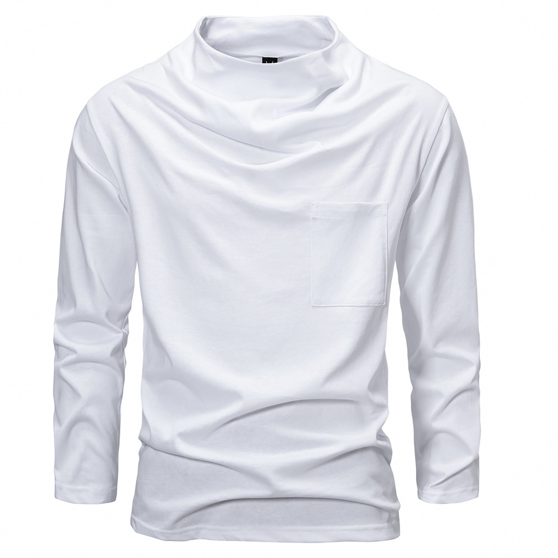 2024クロスボーダーメンズ長袖スタッカネックデザインカジュアル長袖tシャツメンズ立襟アメリカ長袖T