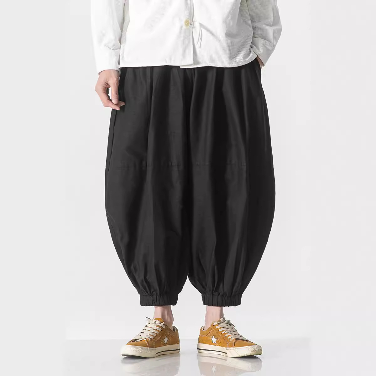 2024クロスボーダー男性春夏店主風純色提灯麻ズボン男性中国風唐装純色カジュアルズボン男性