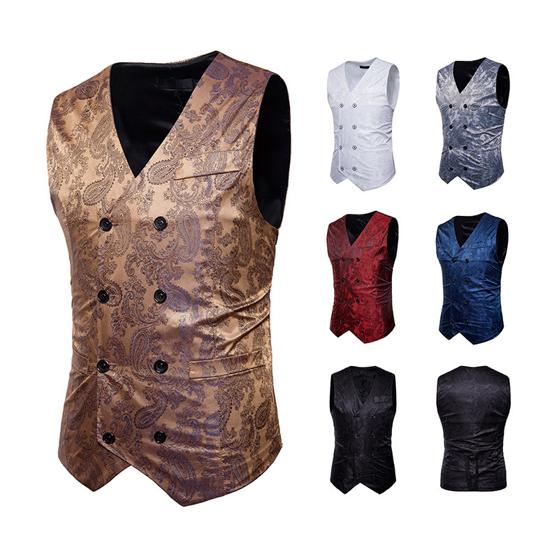 2024国境を越えた新型男性カジュアル腰果花ジャカードの色合わせ紳士正装カジュアルプリント馬甲男コート