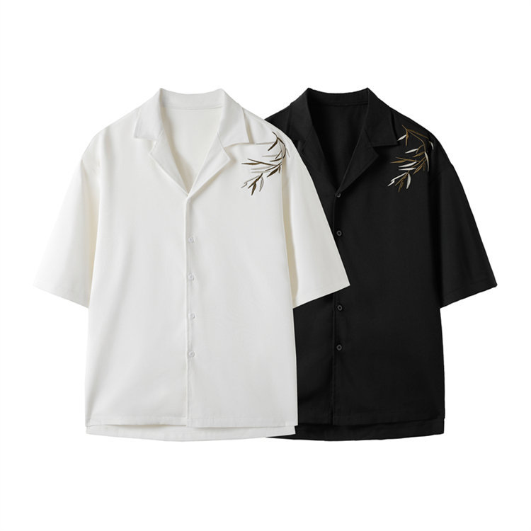 2024クロスボーダー夏新作メンズ新中国式皿ボタン垂れ感刺繍シャツメンズシャツスーツ襟上着