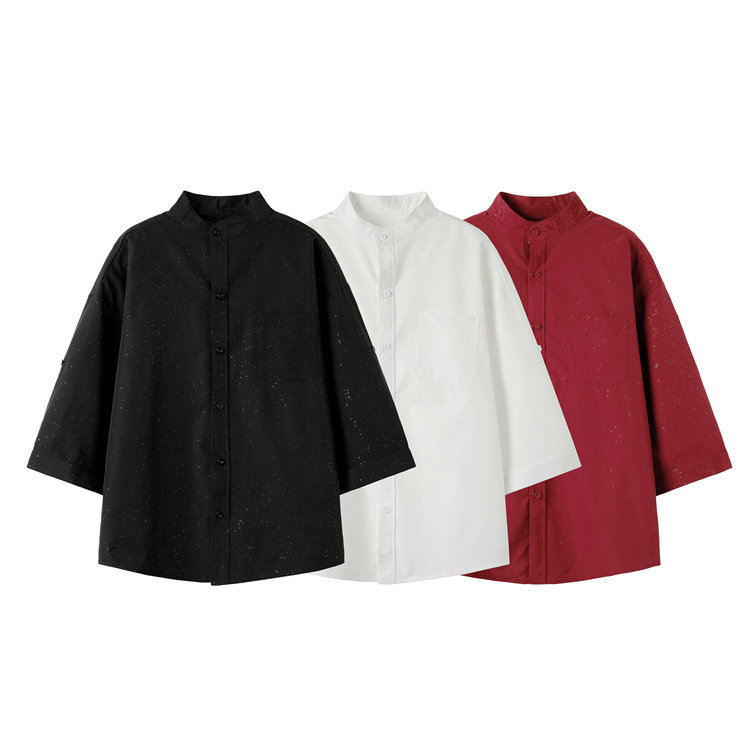 2024クロスボーダー新作メンズカジュアル満天星箔押し個性半袖シャツメンズゆるいシャツ7分袖潮