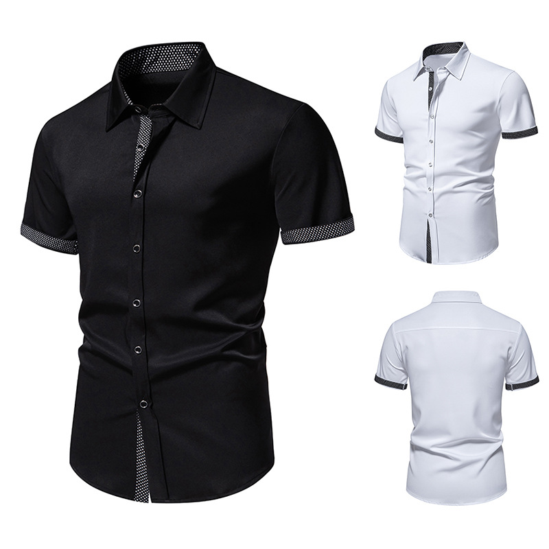 2024国境を越えた新製品アマゾンの新しい男性のドットの色合わせカジュアル半袖シャツ男性の波点色合わせシャツ