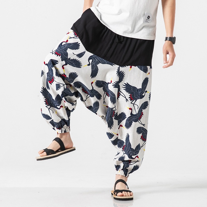 24夏の男性中国風民族風綿麻九分長ズボンの広い足のズボンのネパールの灯籠のズボンの大きい股のズボンの男性