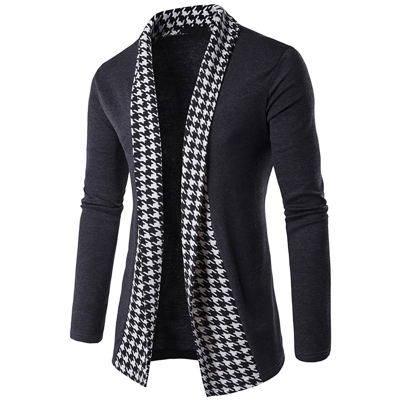 24春と秋の男性の千鳥格のドアの襟は色のメリヤスのヨーロッパのファッションの襟の長袖のカーディガンのセーターの男性の上着にぶつかります。