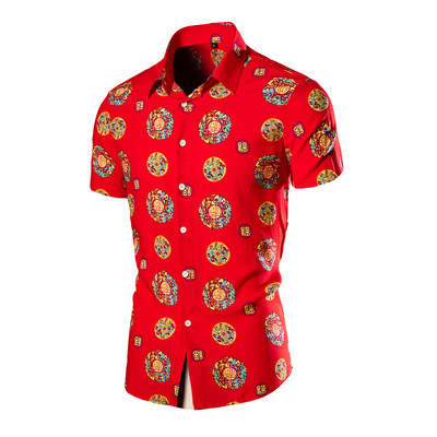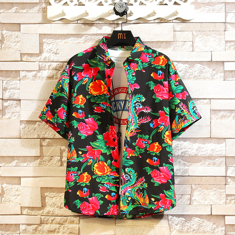 2024クロスボーダー春夏メンズ東北大花潮半袖シャツメンズカジュアルファッション半袖プリントシャツ