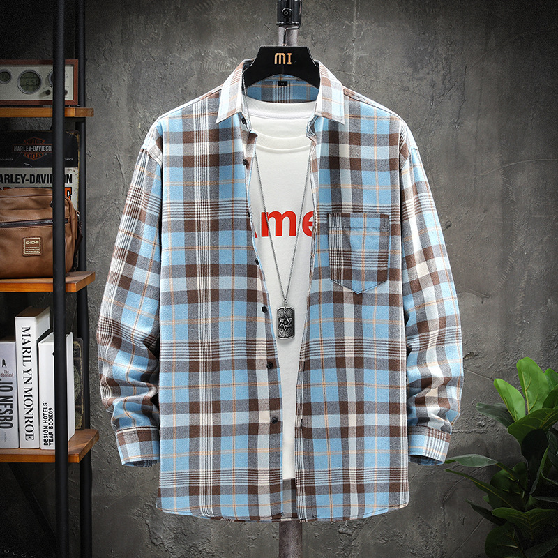 2024クロスボーダー春夏メンズ香港風チェックシャツ長袖ゆったりカジュアルかっこいいシャツメンズファッションシャツ