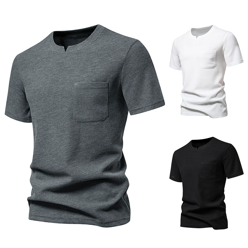 2024春夏新品メンズカジュアルアマゾン純色小vネックデザインレトロ半袖tシャツ男性ファッションメンズ