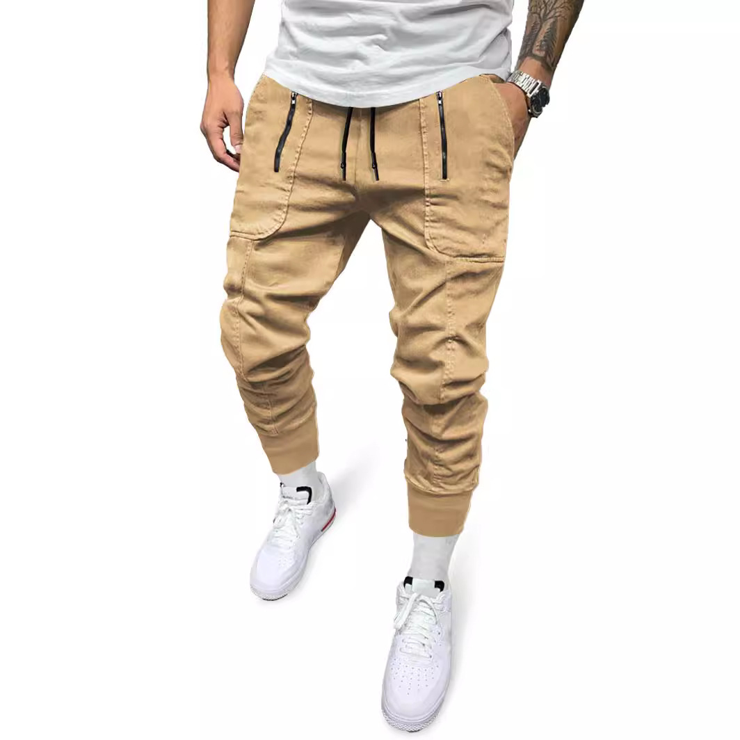 2024アマゾン春秋新型欧米男性ねじ束足運動カジュアルパンツ男性復古ファッションパンツ