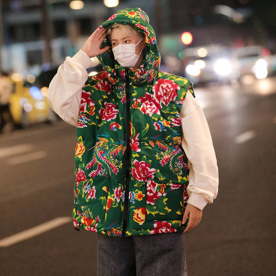 2023中国風東北大花綿のベストコートの大きいサイズはゆったりしています。