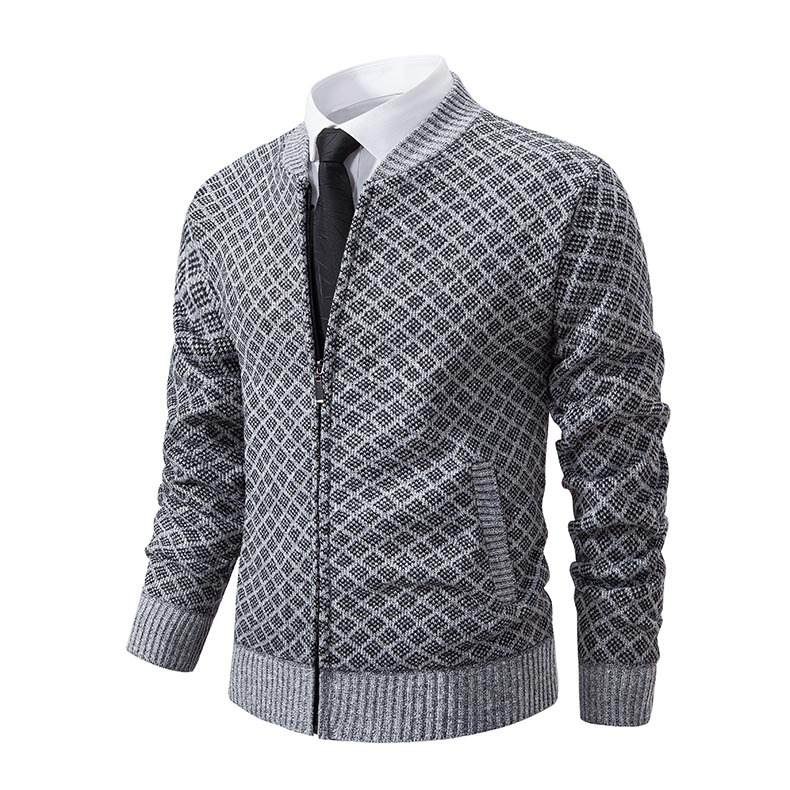 23種類の国境を越えた秋冬男性の中ジャカードカジュアルカーディガンのセーターコート立襟ニットは保温セーターを厚くした