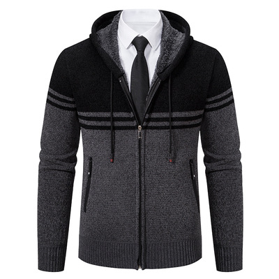 24クロスボーダー秋メンズファッションセーターフード付きニットセーター中丈厚手カーディガンセーターメンズジャケット