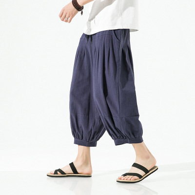 2023中国風男性熱売金夏綿麻九分ズボン男性亜麻ゆるい提灯カジュアルパンツビーチパンツ