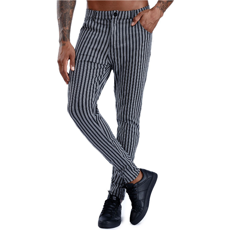 2022新型ヨーロッパコードのファスナーの装飾は白いストライプの生地の個性の小さい足のポケットのカジュアルなズボンをつづり合わせます。