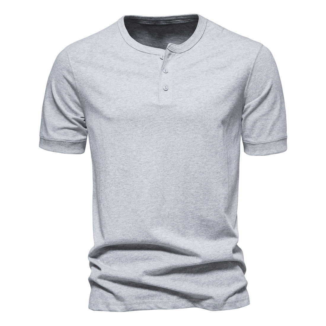 2023夏の外国貿易新型男性ヘンリーシャツ半袖tシャツヘンリー襟レトロ綿スポーツシャツ