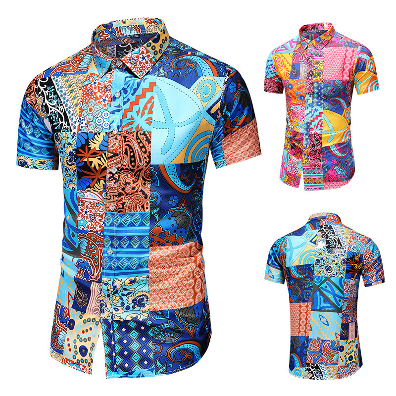 2023アマゾンカジュアルメンズ花柄シャツ春新作メンズビッグサイズプリント半袖シャツ