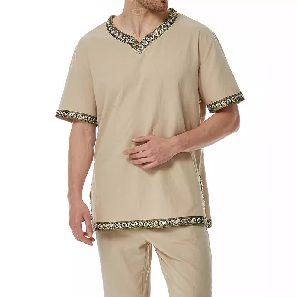 2023ゆるい部屋服男性中世服装ハロウィーン文芸腰バイキング騎士復古半袖