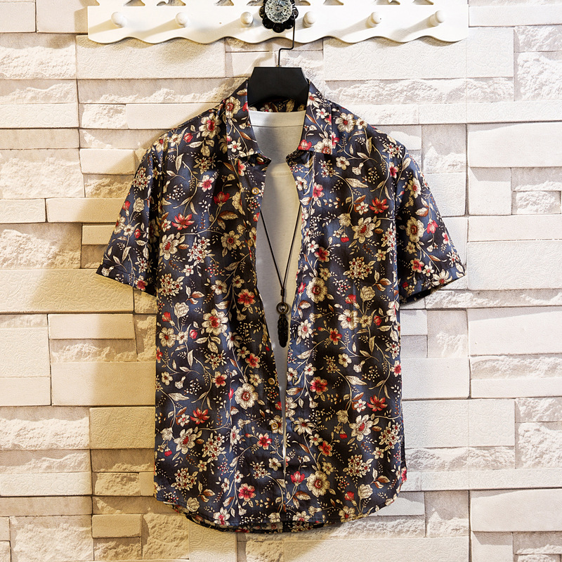 2023春夏アマゾン新しいメンズカジュアルファッション多色花シャツ半袖シャツ