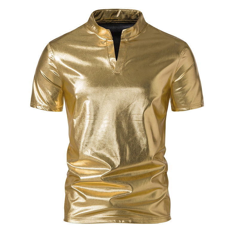 2023アマゾン新製品男性馬甲亮面ヘンリー襟poloファッションクラブ風半袖polo