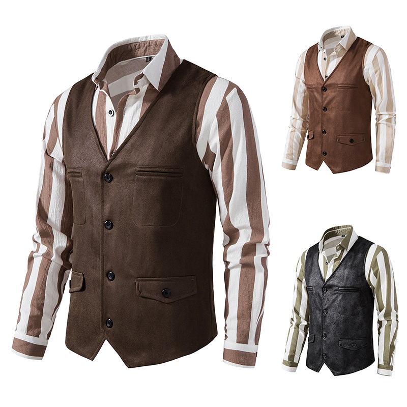 2023アマゾン春秋新型対外貿易男性欧米v襟スエード単列ボタンコートカジュアルベスト