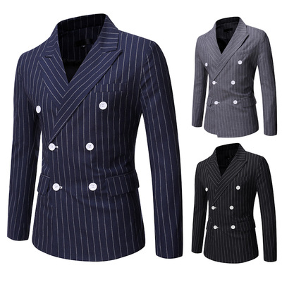 2023春秋アマゾンの新型英倫男性ストライプカジュアルダブルボタンの襟のスーツ