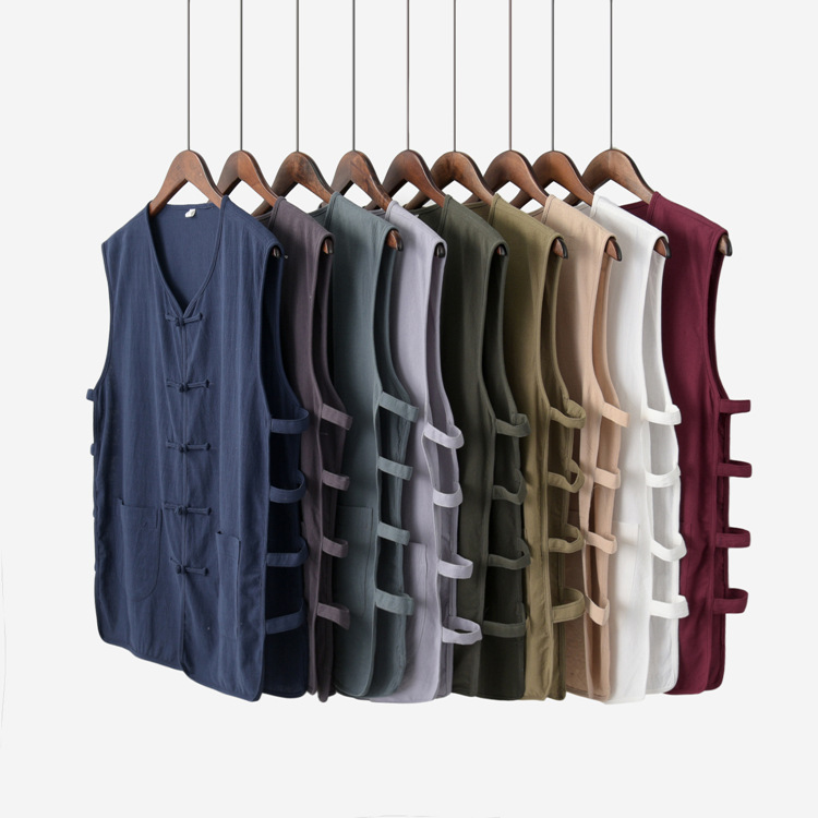 2023速売通男性新綿麻中国風復古盤ボタン大サイズ男性式馬甲レジャーベスト