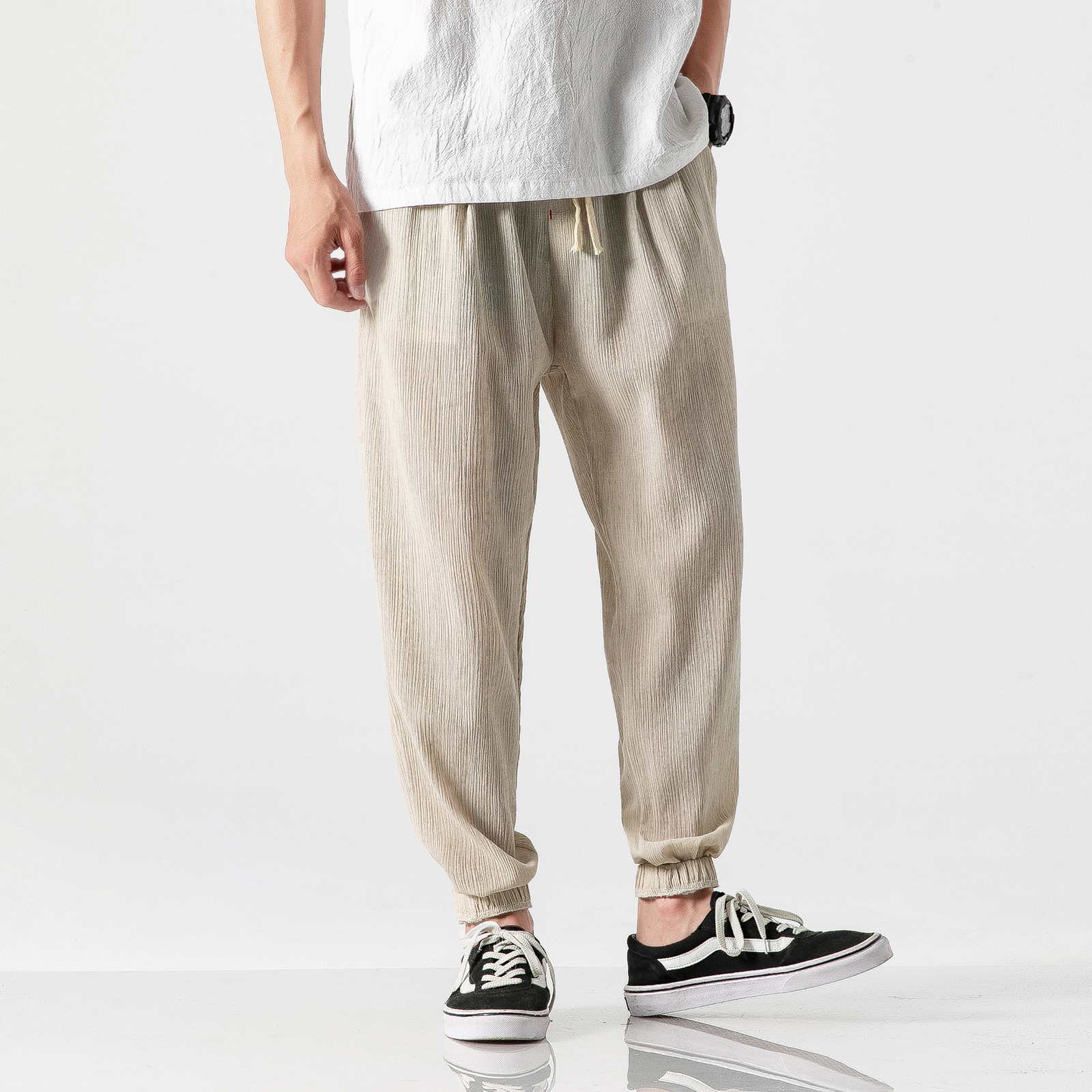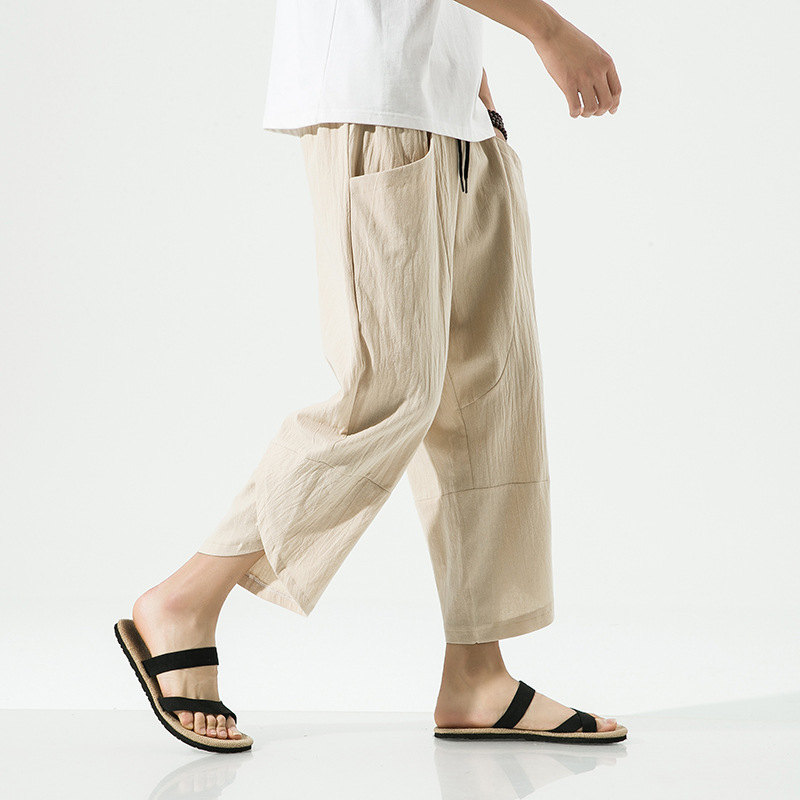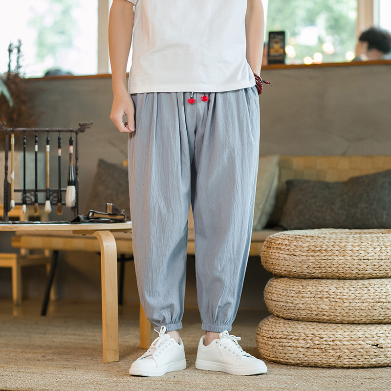 2023綿麻夏中国風亜麻ズボン男性ゆるいサイズ日系ゆるいカジュアルパンツ