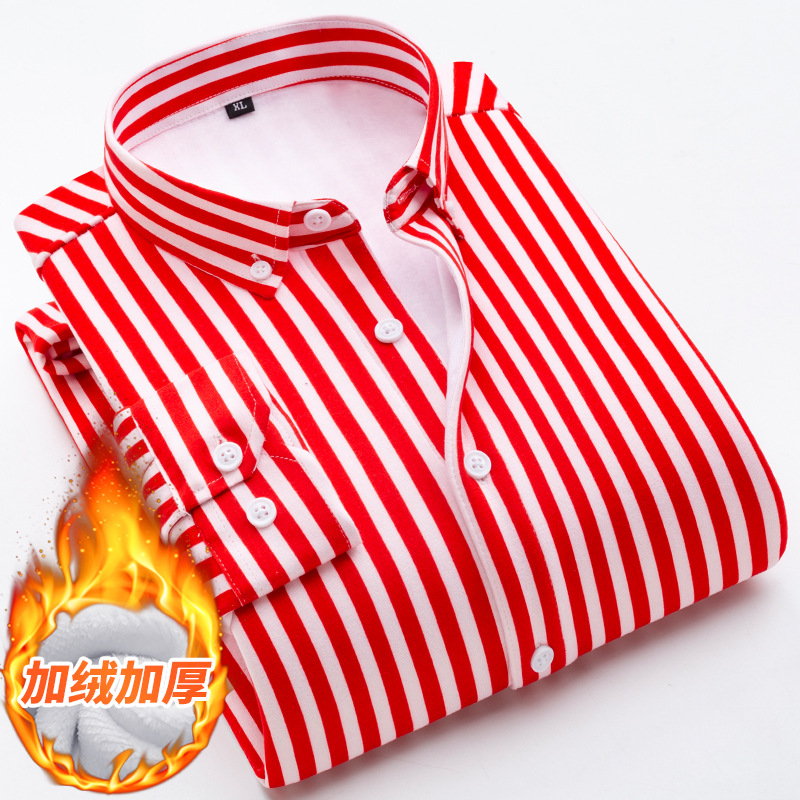 2023国境を越えた保温縞ベルベットシャツ冬男性カジュアル縞保温シャツベルベットシャツ