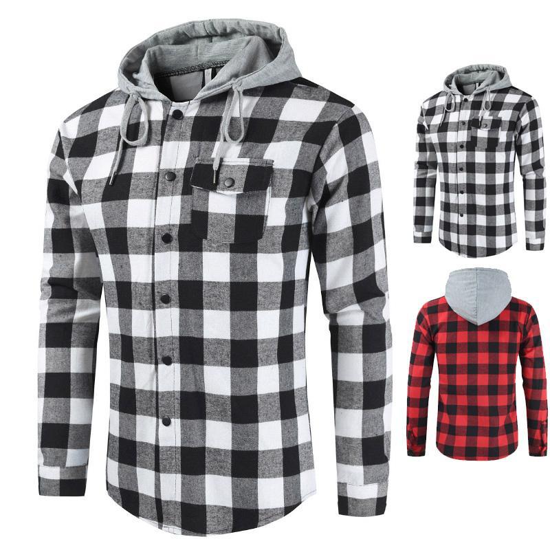2022速売通対外貿易新秋冬男性カジュアルファッション格子フード付き長袖シャツ