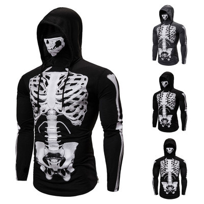 2021ストレッチメンズ忍者服フード付きハロウィーンコスプレフルスケルトンスカルマスク長袖tシャツ