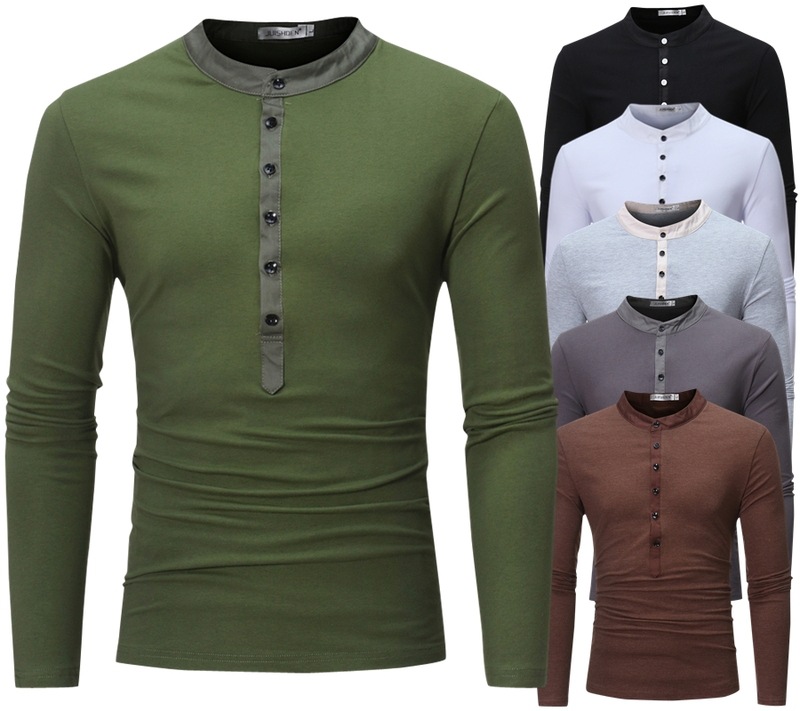 2023アマゾン欧米の新型男性綿麻ヘンリーシャツ長袖ヒッピーカジュアルビーチ立襟シャツ