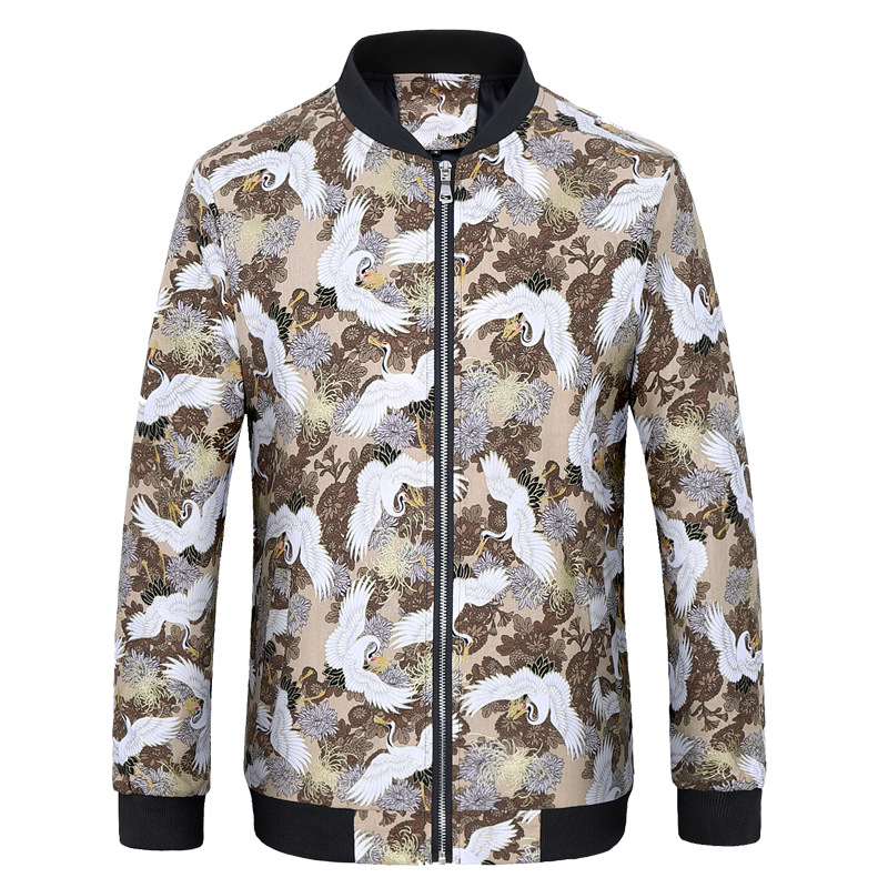 2021速売通男性プリントジャケット大サイズ修身水墨風立襟ジャケットコート