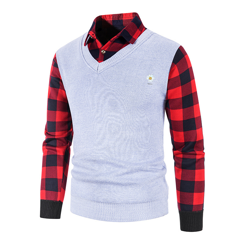 2021クロスボーダー秋冬新型ベルベット男性大サイズ対外貿易ビジネスカジュアルシャツ襟セーター偽2枚