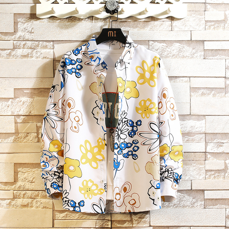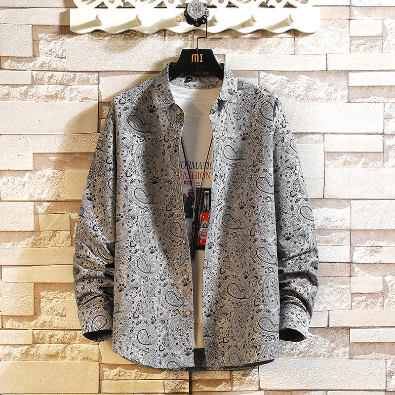 2021秋冬新型男性長袖腰果花ゆるいカップル大サイズ長袖シャツ