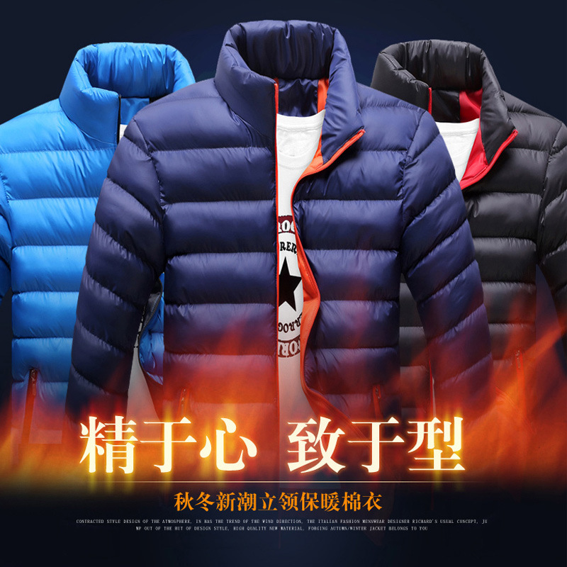 2022秋冬保温綿服保温ランニング量男性立襟綿服純色コート秋冬長袖綿服