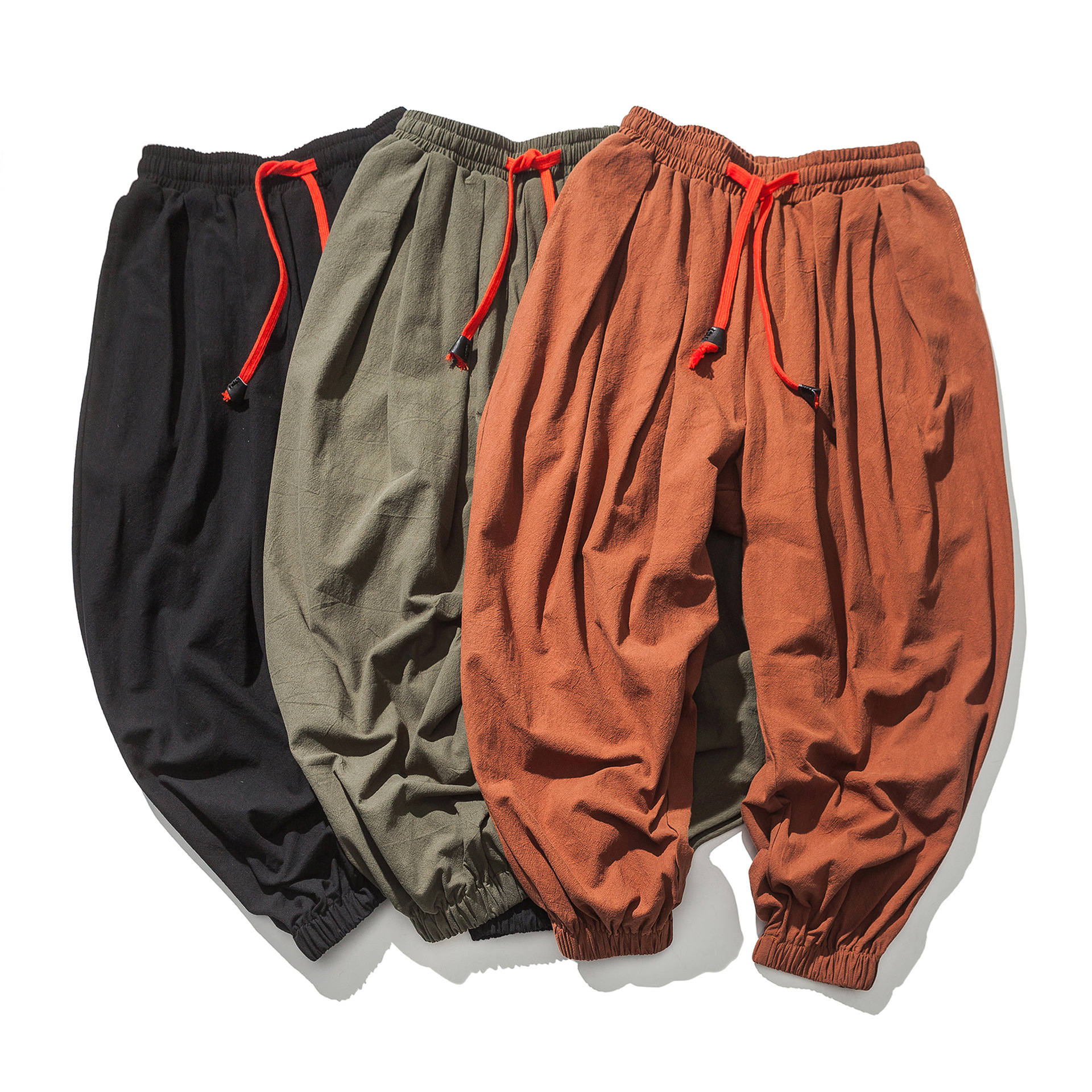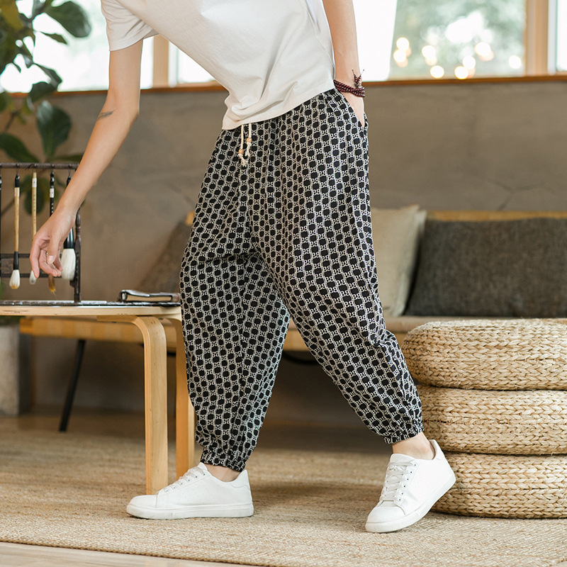 2024 秋冬アマゾンメンズ春と秋のリネンルーズフィットレギンス中国風日本カジュアルパンツ男性用