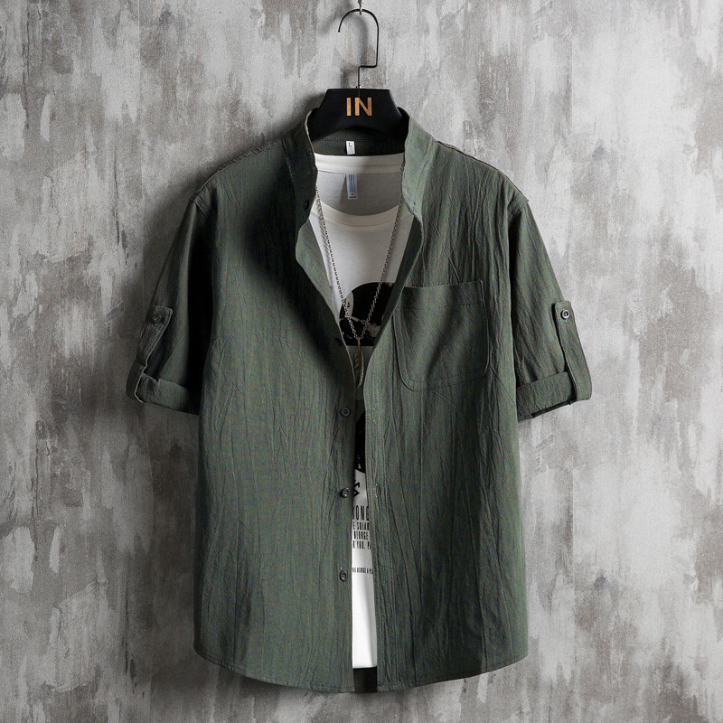 2024速売通新型男性綿麻カジュアル夏七分袖シャツ男性韓国版国トレンドシャツ男性