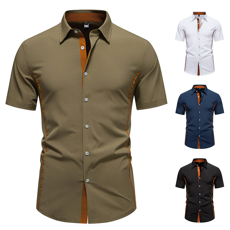ヨーロッパコードクロスボーダー2025春夏アマゾンメンズ衝突色三角襟カジュアル長袖シャツファッションシャツ男