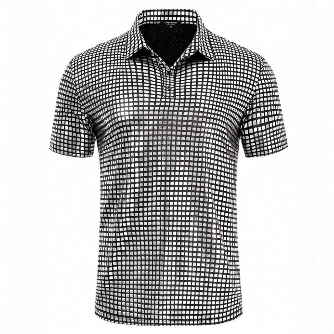 ヨーロッパコード2025国境を越えた対外貿易男性半袖POLOシャツのスパンコールtシャツの襟が明るくてカジュアルなtシャツ男